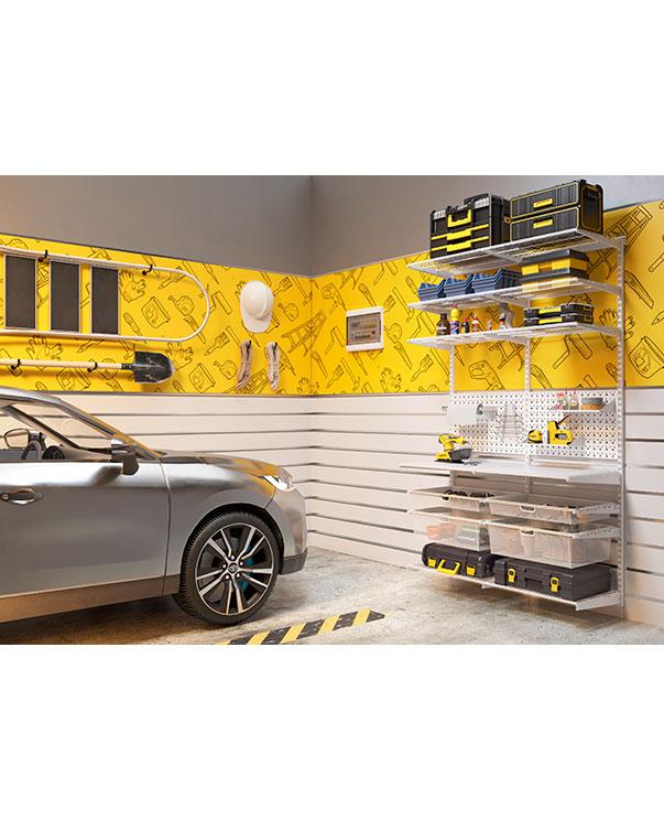 Гардеробная система хранения ПРАКТИК HOME — это надежное решение для обустройства гаража, мастерской или кладовой. Главным преимуществом является универсальная перфопанель, которая позволяет организовать идеальное хранение ручного и электроинструмента. Благодаря комбинации квадратной перфорации 10х10 мм и круглых отверстий диаметром 7 мм, панель совместима с большинством российских и зарубежных крючков или держателей.