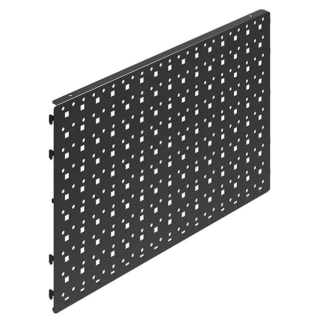 Панель оснащена квадратной перфорацией 10×10 мм с шагом 38 мм, что позволяет установить большое количество держателей для гаечных ключей, отвёрток, сверл, торцевых головок и полок различного размера.
