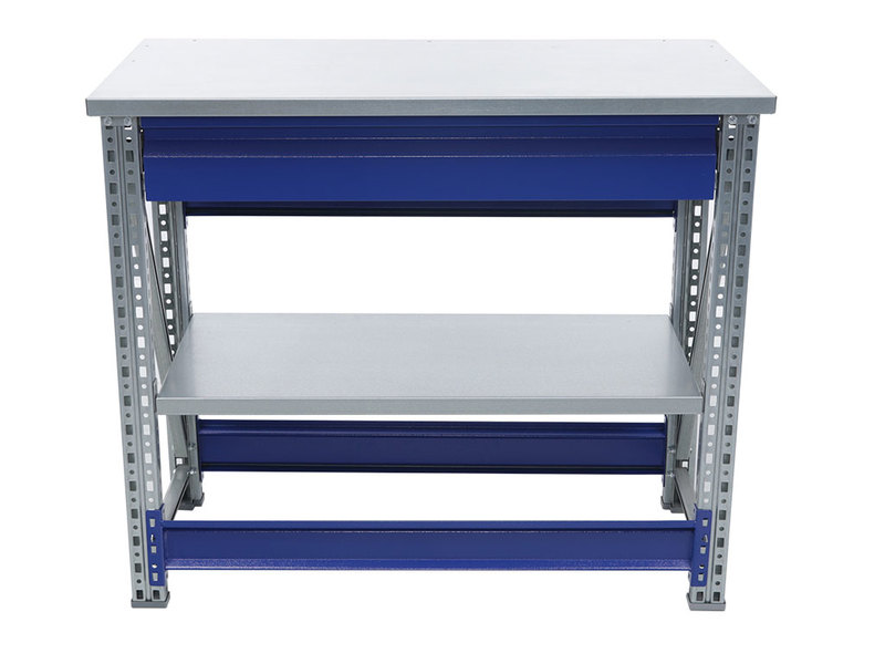 - Возможность дополнить верстак полкой (нагрузка 100 кг) и выдвижным ящиком (нагрузка 30 кг).